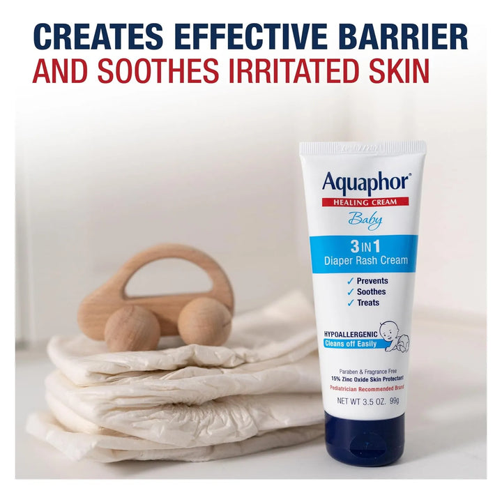 Imagina la tranquilidad de saber que la piel suave y delicada de tu bebé está protegida contra las irritaciones del pañal. Con Aquaphor Baby 3 En 1 Diaper Rash Cream, no solo previenes el sarpullido, sino que también calmas y tratas cualquier enrojecimiento o molestia. Esta crema está diseñada para madres que buscan lo mejor para sus pequeños, ofreciendo una solución rápida y efectiva.