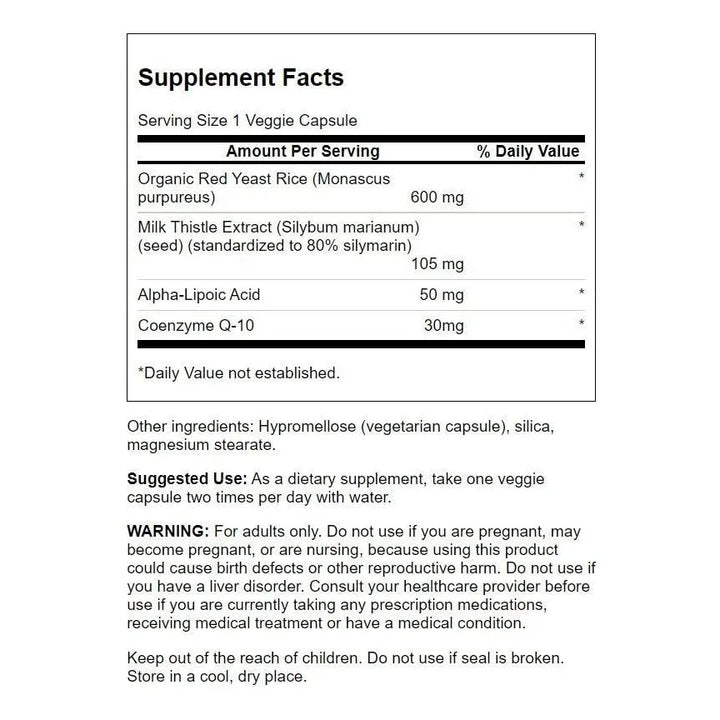 - Fórmula Potente: Combina levadura roja de arroz, CoQ10, cardo mariano y ácido alfa lipoico para un efecto sinérgico. 🌟