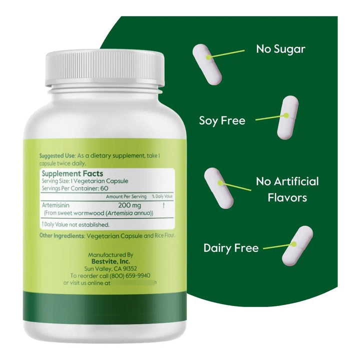 - ✨ Pura y sin compromisos: Sin rellenos dañinos, solo artemisinina de alta concentración (200mg por cápsula).