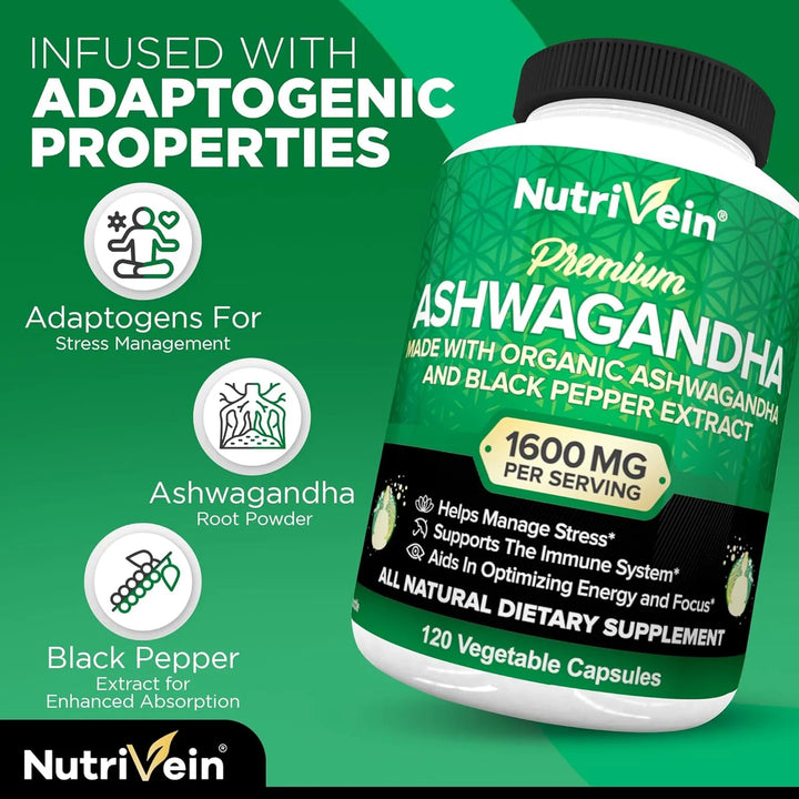 ¿Te sientes agotado, estresado o sin energía? La vida moderna puede ser abrumadora, pero no tienes que sufrir en silencio. Nuestras cápsulas de Ashwagandha 1600 mg con extracto de pimienta negra están diseñadas para ayudarte a recuperar el equilibrio, reducir el estrés y mejorar tu bienestar general. Imagina despertarte cada mañana sintiéndote renovado, con la claridad mental y la energía para enfrentar cualquier desafío. Esto no es un sueño, es lo que nuestra Ashwagandha puede hacer por ti.