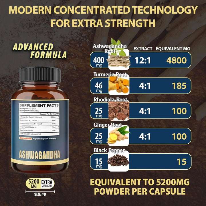 La vida moderna exige demasiado: estrés acumulado, falta de energía y un sistema inmunológico que necesita refuerzo. ¿Te identificas? Nuestra mezcla única de Ashwagandha, jengibre, cúrcuma, Rhodiola Rosea y pimienta negra actúa sinérgicamente para brindarte apoyo integral. Con solo una cápsula al día, obtendrás 5200 mg de ingredientes puros, respaldados por estándares de calidad cGMP, ISO y FDA. Sin gluten, sin OMG y 100% vegano, es la opción inteligente para quienes priorizan su bienestar.