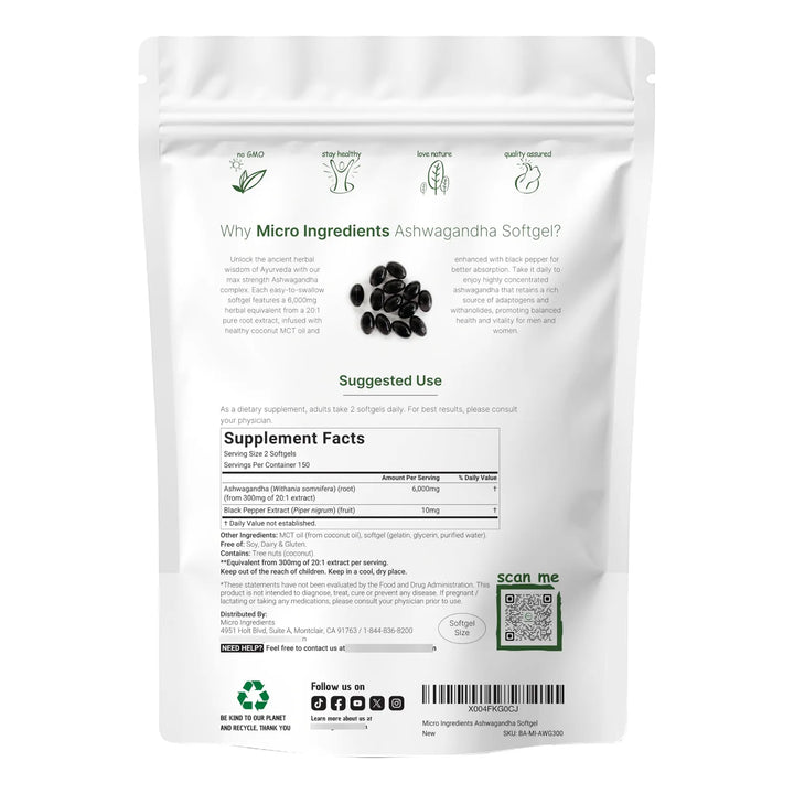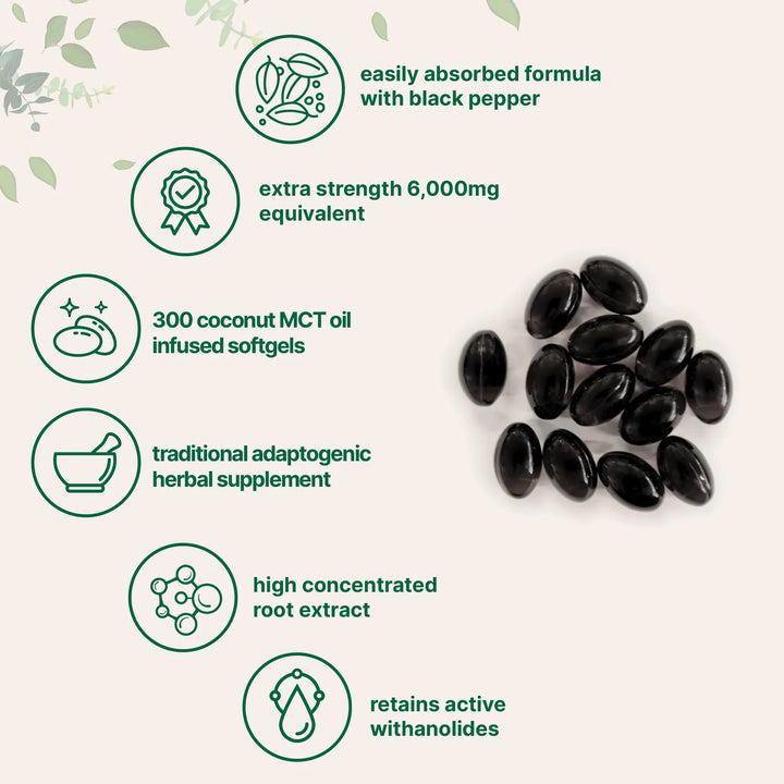 Imagina comenzar cada día con una sensación de calma y equilibrio, sintiéndote más fuerte, más enfocado y listo para enfrentar cualquier desafío. Con nuestra Ashwagandha 6000 mg en cápsulas blandas, potenciada con aceite MCT de coco y pimienta negra para una absorción superior, estás a un paso de transformar tu bienestar.