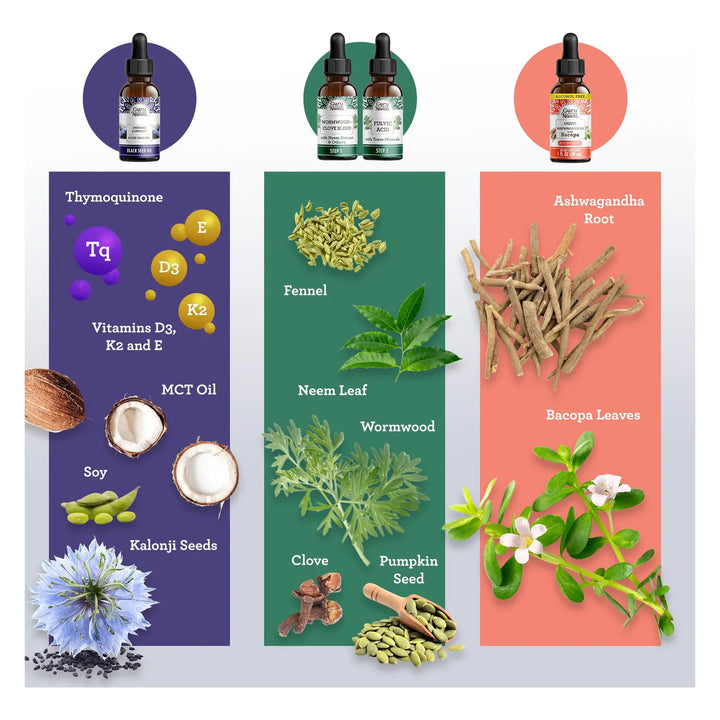 La Ashwagandha, conocida como la 'reina de las hierbas' en la medicina ayurvédica, trabaja para reducir los niveles de cortisol, la hormona del estrés, mientras promueve un sueño reparador. Por otro lado, el aceite de semilla negra, rico en vitamina D3 y K2, fortalece tu sistema inmunológico y apoya la salud ósea. Juntos, crean una sinergia poderosa para transformar tu salud desde adentro.