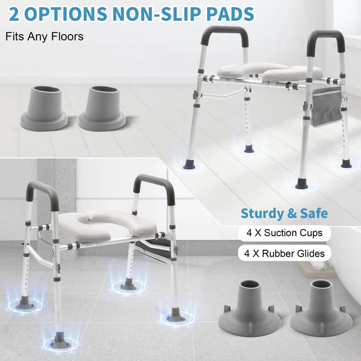 El asiento de inodoro elevado funciona aumentando la altura del inodoro estándar, lo que reduce el esfuerzo necesario para sentarse y levantarse. Su diseño ergonómico y las asas ajustables proporcionan soporte adicional, mientras que las ventosas y almohadillas antideslizantes aseguran que el producto permanezca firme en su lugar. Esto lo hace ideal para personas con movilidad reducida o quienes necesitan un apoyo extra.