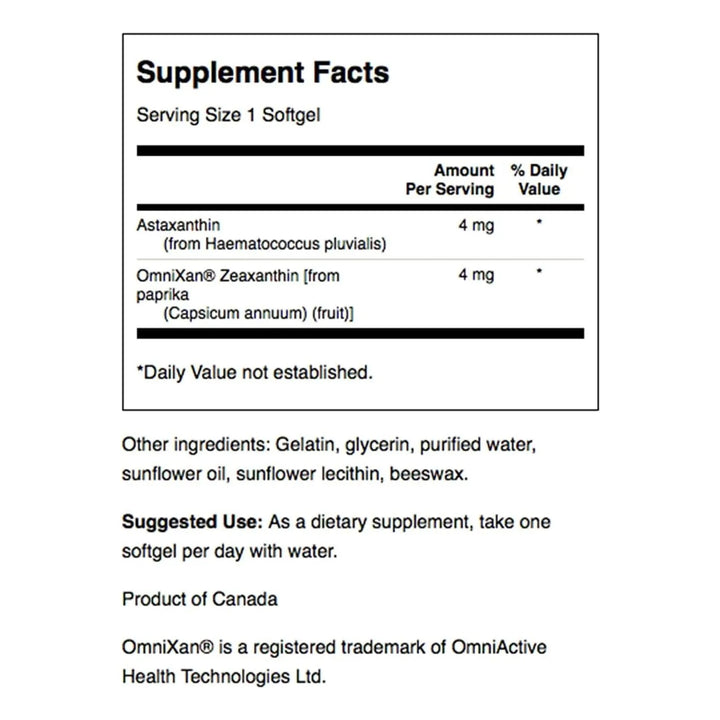- Fórmula con 4 mg de Astaxantina y 4 mg de Zeaxantina por cápsula 💊