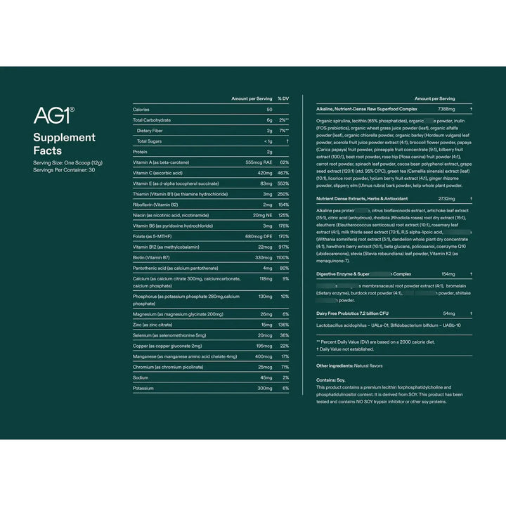 Con 75 vitaminas, minerales e ingredientes de origen alimentario, Athletic Greens es la solución definitiva para cubrir las brechas nutricionales que incluso las dietas más balanceadas pueden dejar. ¿Te cuesta mantenerte constante con múltiples suplementos? Este producto combina todo lo que necesitas en una sola porción diaria, ahorrándote tiempo, dinero y la molestia de tomar pastillas interminables.
