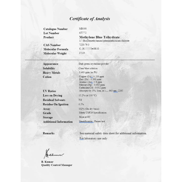 Azul de Metileno USP: Solución Profesional al 1% con 99% de Pureza