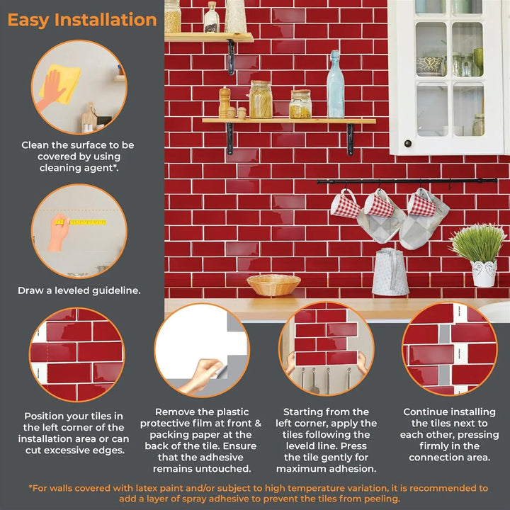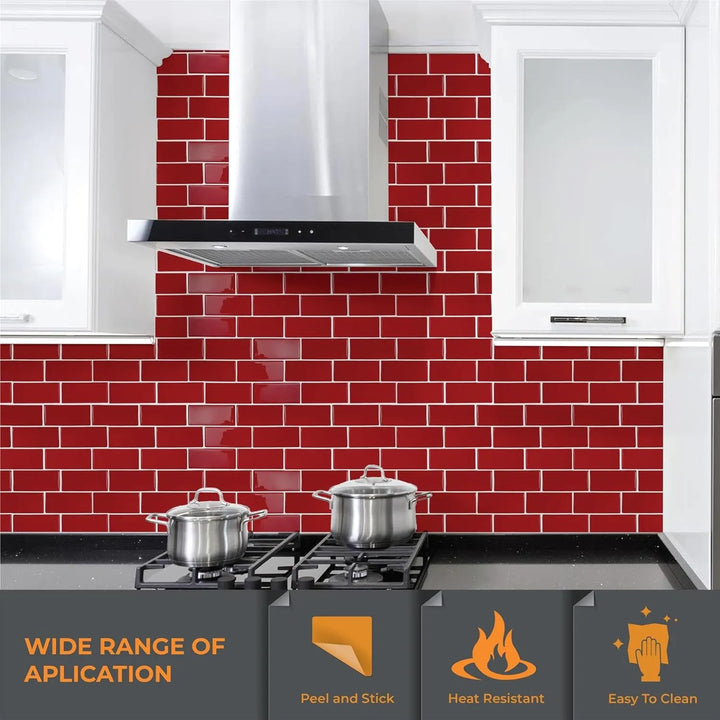 Imagina despertar cada mañana con una cocina que parece salida de una revista de diseño. Nuestros azulejos Peel and Stick ofrecen un acabado profesional en solo unos pasos, con un brillo rojo intenso y tecnología 3D que atrapa miradas. Resistente al agua y al calor, perfecto para áreas de alto tráfico.