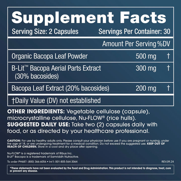 Cada cápsula está respaldada por rigurosas pruebas de laboratorio independientes, asegurando que recibes un producto de la más alta calidad. No se trata solo de un suplemento más; es una inversión en tu bienestar mental y emocional. La Bacopa ha sido utilizada durante siglos en la medicina tradicional, y ahora, con la tecnología moderna, hemos perfeccionado su potencia para ofrecerte lo mejor de la naturaleza y la ciencia.