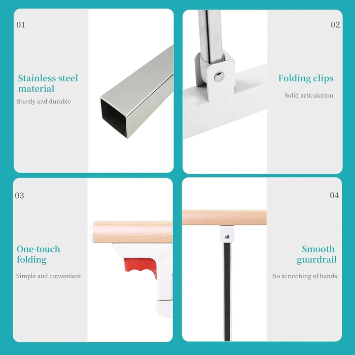 Con un diseño robusto y funcional, esta barandilla no solo evita accidentes, sino que también se convierte en un apoyo esencial para adultos mayores, personas con movilidad reducida o mujeres embarazadas. Su acero inoxidable de alta calidad garantiza durabilidad, mientras que su mecanismo plegable optimiza el espacio cuando no está en uso.