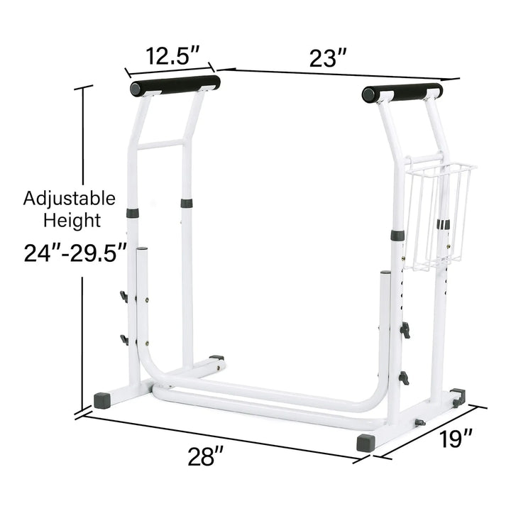 Este innovador producto no solo es funcional, sino que también se adapta a tus necesidades. Con un rango de altura ajustable entre 24 y 29.5 pulgadas, se personaliza para ofrecer el soporte perfecto. Su diseño portátil y fácil de instalar significa que no necesitas herramientas complicadas ni perforar paredes. ¡En cuestión de minutos, tendrás un baño más seguro!