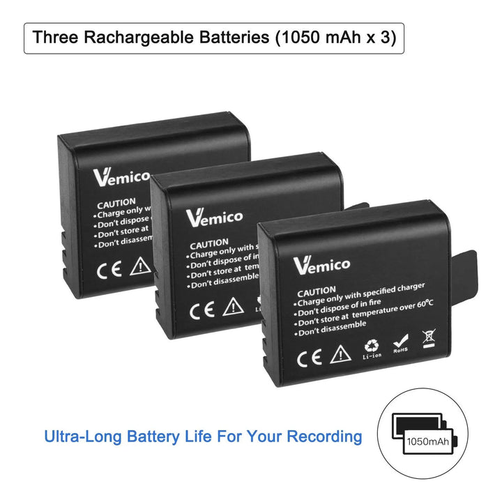 Con un 30% más de capacidad que las baterías estándar de 900mAh, disfrutarás de sesiones de grabación más largas. Tres baterías significan que siempre tendrás una de repuesto, listas para cuando la necesites. Olvídate de cargar constantemente y concéntrate en vivir la aventura.