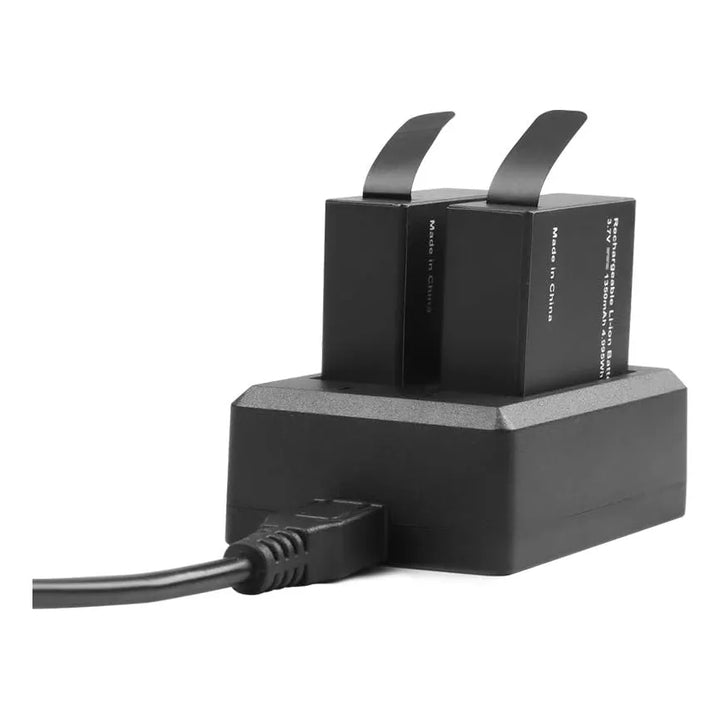 Este kit transforma tu experiencia de grabación al eliminar la ansiedad por la batería baja. Cada batería se carga en el cargador dual mediante un cable USB estándar, mostrando una luz roja durante la carga y azul al completarse. Con dos baterías extras, siempre tendrás una lista para usar mientras la otra se recarga, garantizando grabaciones continuas.