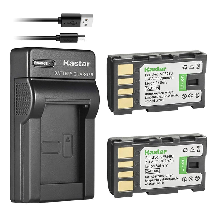Kastar Batería (X2) y cargador USB delgado para JVC BN-VF808, BN-VF808U, BNVF808 y JVC Everio GZ-MG130 148 150 155 175 255 275 575 GZ-HD7 GR-D745 746 7 50 76 0 770 771 775 790 796 JVC MiniDV + más