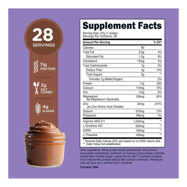 Este delicioso batido combina lo mejor de la ciencia y el sabor. Con 0.39 oz de proteína y solo 0.11 oz de carbohidratos netos por porción, es la opción perfecta para quienes buscan mantener su figura sin sacrificar el placer. Además, con solo 90 calorías por porción, puedes disfrutarlo sin remordimientos.