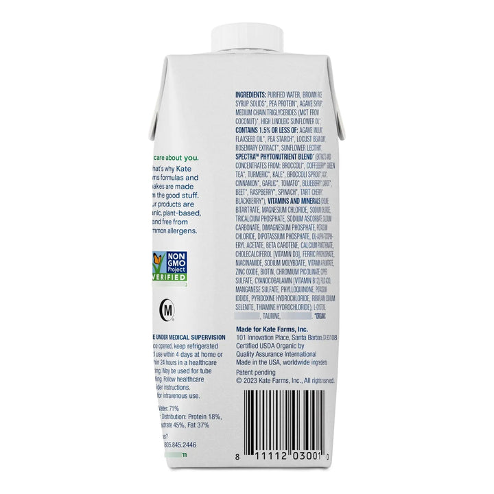 ¿Estás buscando una solución rápida, deliciosa y nutritiva para cubrir tus necesidades diarias de calorías y proteínas? ¡No busques más! El Batido Nutricional Orgánico KATE FARMS está diseñado para brindarte energía y nutrición de alta calidad en cada sorbo. Con 455 calorías por porción, 0.71 oz de proteína y 27 vitaminas y minerales esenciales, este batido es perfecto para quienes necesitan un impulso extra en su dieta.