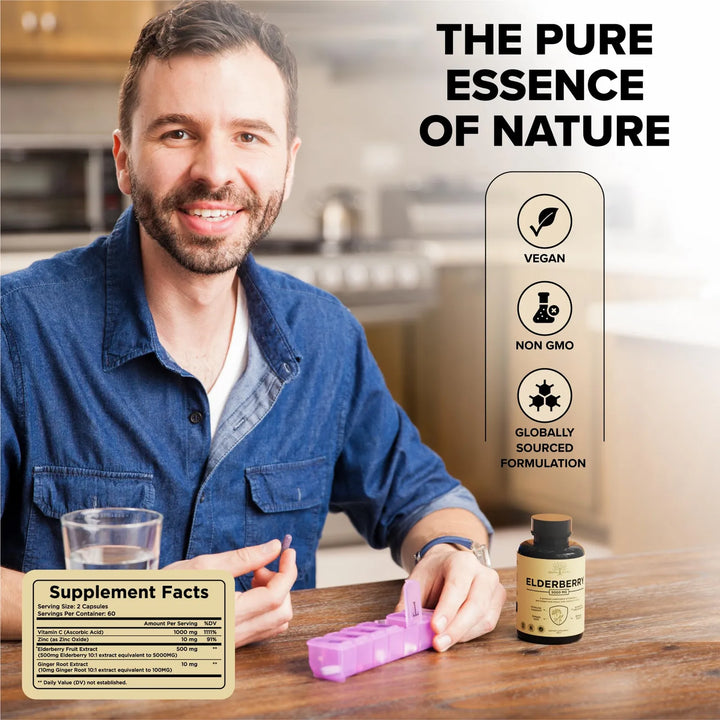 Este poderoso combinado no es solo otro suplemento más. Es tu aliado diario para mantenerte activo y saludable, incluso cuando los demás están luchando contra el malestar. Cada cápsula está cargada con 5000 mg de baya de saúco, un ingrediente venerado por generaciones por su capacidad para apoyar el sistema inmunológico.