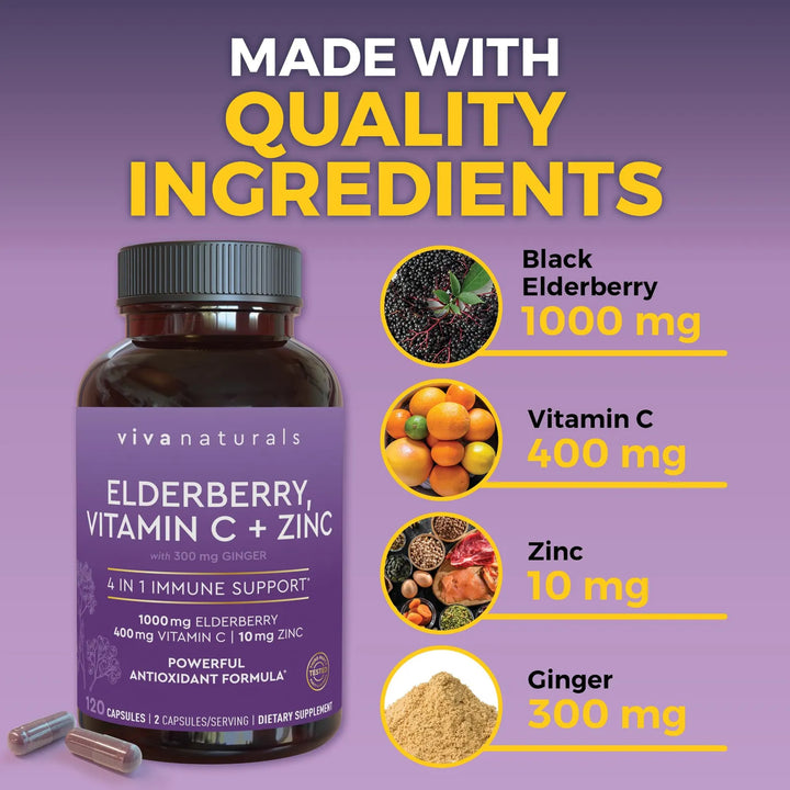 - 🌿 Refuerzo Inmunológico Todo El Año: Combate los resfriados y gripes con la potencia del saúco, zinc, vitamina C y jengibre en una sola cápsula. ¡Tu escudo natural!