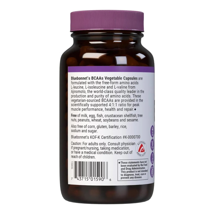 La fórmula avanzada de Bluebonnet utiliza aminoácidos AjiPure de Ajinomoto, líderes en calidad mundial. Cada cápsula contiene una relación óptima de 4:1:1 de L-leucina, L-isoleucina y L-valina, ingredientes clave para reparar y fortalecer tus músculos. ¿Lo mejor? Es 100% vegano, sin gluten, sin soja y certificado Kosher, ideal para quienes cuidan al máximo lo que consumen.