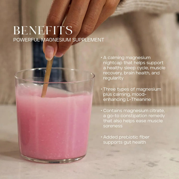 Nuestra fórmula actúa directamente en tu sistema nervioso, promoviendo la producción de neurotransmisores que inducen la relajación. El magnesio ayuda a relajar los músculos y regular el ritmo cardíaco, mientras que la L-Teanina equilibra las ondas cerebrales para un estado de calma alerta. Los prebióticos y antioxidantes de la granada completan el círculo de bienestar, apoyando tu salud desde adentro hacia afuera.