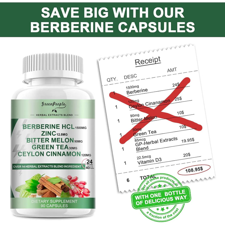 - Fórmula Sinérgica Potente - 1500mg de berberina + 5 extractos botánicos en cada cápsula 💪