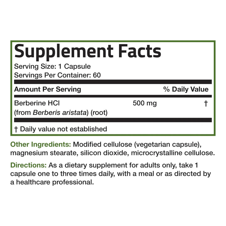 - 500mg de Berberina HCI por cápsula vegetariana 🌱