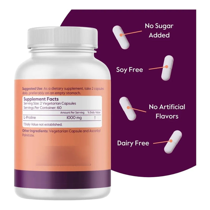 - Pureza Garantizada: Cada cápsula contiene 500mg de L-prolina sin aditivos innecesarios. 🧪
