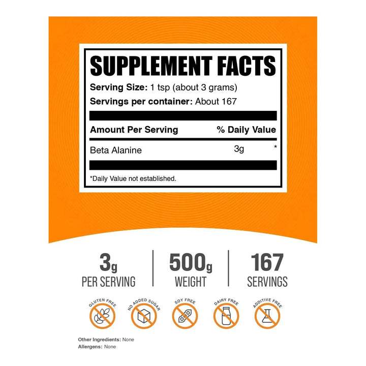 Este suplemento no tiene sabor y está libre de gluten, lo que lo hace ideal para quienes buscan un producto limpio y eficaz. No importa si eres un profesional o un entusiasta del fitness, la Beta Alanina te ayudará a maximizar tu potencial, apoyando tus objetivos de fuerza y resistencia. Además, su formulación transparente y confiable garantiza que estás consumiendo un producto de alta calidad, probado y fabricado bajo estrictos estándares cGMP.