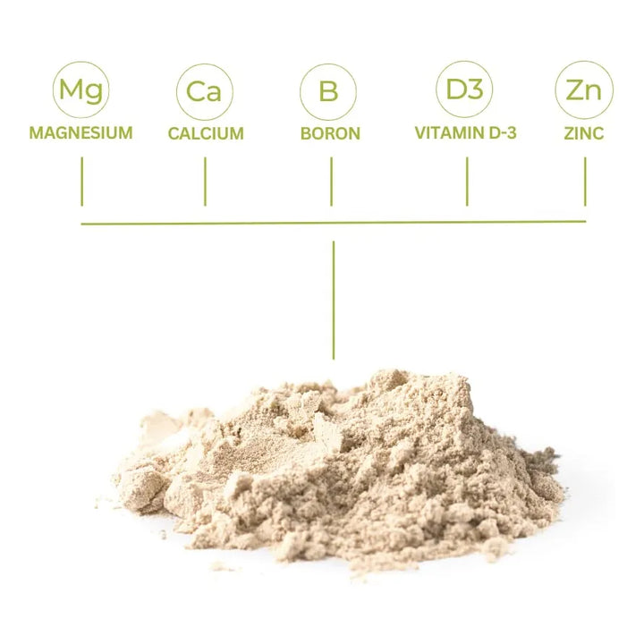 - 🌿 Fórmula completa para huesos y articulaciones: Combina calcio, magnesio, zinc y vitamina D3 para un soporte óseo integral.
