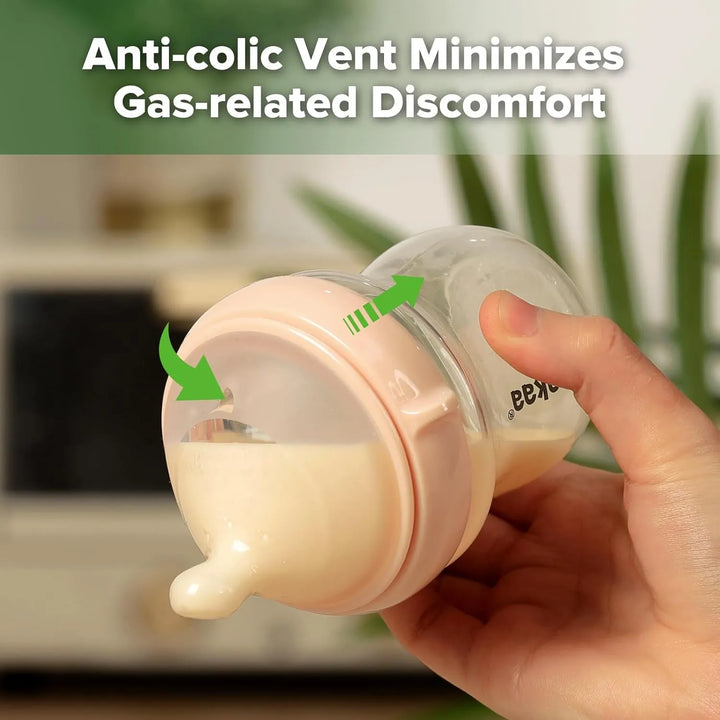 ¿Preocupado por los cólicos y gases? Nuestro biberón cuenta con un sistema de ventilación anticólicos que reduce la entrada de aire, asegurando una alimentación suave y sin molestias. Además, su cuello ancho facilita la limpieza y el llenado, ahorrándote tiempo y estrés en tu rutina diaria. Fabricado con vidrio de borosilicato resistente a altas y bajas temperaturas, puedes calentar o enfriar la leche con total confianza, sabiendo que el material no liberará sustancias nocivas.
