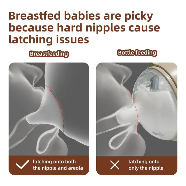 - 💖 Transición sin lágrimas: La tetina en forma de pecho fomenta un cierre natural, haciendo que tu bebé acepte el biberón sin rechazos.