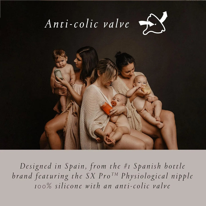 El Biberón Fisiológico de Silicona Flexible está diseñado para funcionar como una extensión natural del pecho materno. Su tetina SX Pro, con válvula anticólicos, permite que la lengua del bebé se posicione de manera natural, similar a cuando está amamantando. Esto no solo facilita la transición entre la lactancia materna y el biberón, sino que también reduce el riesgo de cólicos y molestias.