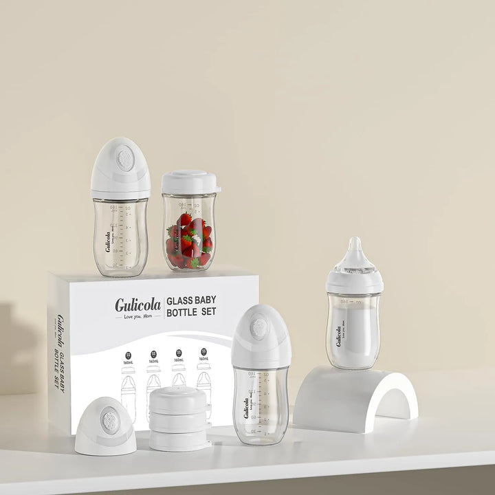 ¿Sabías que muchos biberones plásticos contienen sustancias nocivas como BPA o ftalatos? Con nuestros biberones de vidrio de borosilicato, eso es cosa del pasado. Naturalmente libres de toxinas, son la opción más saludable para tu pequeño. Además, su diseño anticólico y pezón de flujo extra lento aseguran que tu bebé se alimente cómodamente, sin molestias ni gases.