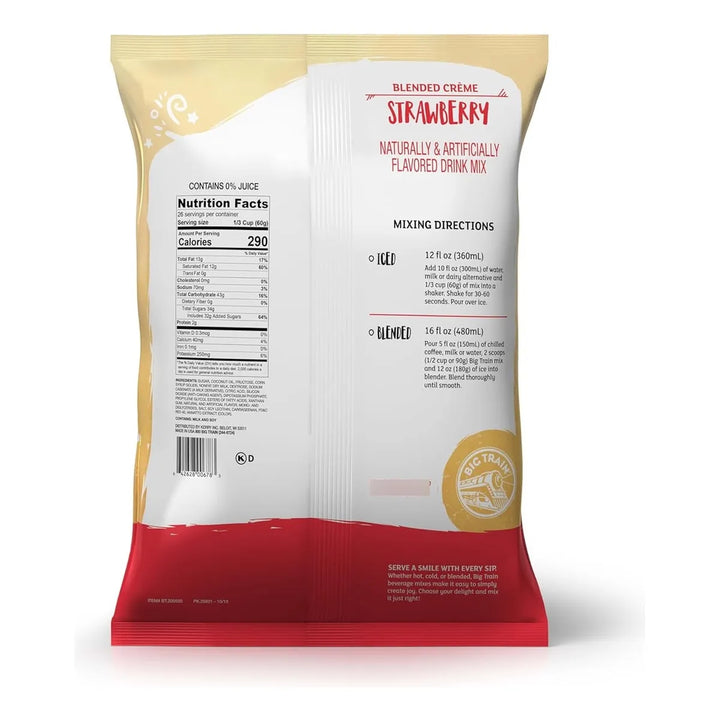 ¿Imaginas poder disfrutar de un delicioso frappé de fresa estilo cafetería en la comodidad de tu hogar, sin complicaciones y en cuestión de segundos? Con Big Train Creme Kidz Kreamz, ese sueño se hace realidad. Esta mezcla en polvo de crema de fresa está diseñada para brindarte momentos de felicidad en cada sorbo, ya sea frío, caliente o mezclado con hielo. Perfecto para niños y adultos, es la solución rápida y deliciosa que estabas buscando.