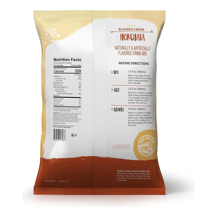 Imagina disfrutar de una deliciosa horchata cremosa en cuestión de segundos, sin complicaciones ni ingredientes difíciles de encontrar. Con Big Train Vivaz Horchata, la mezcla de crema mezclada que revoluciona tu manera de disfrutar bebidas, solo necesitas agua y listo. ¿Te gustaría saborear una horchata caliente en un día frío o refrescarte con una versión helada en el verano? Esta mezcla versátil lo hace posible, adaptándose a tus antojos en cualquier momento.