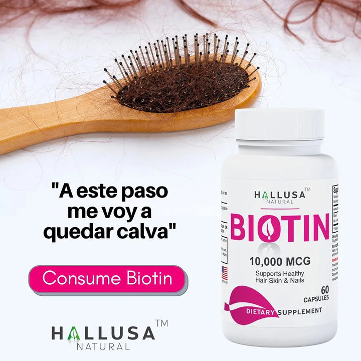 Imagina despertar cada día con menos cabello en la almohada y más confianza en tu espejo. La biotina no solo detiene la caída, sino que activa el crecimiento de nuevos folículos más fuertes. Miles de hombres y mujeres ya han experimentado la diferencia: cabello más abundante, uñas que no se rompen y una piel radiante.