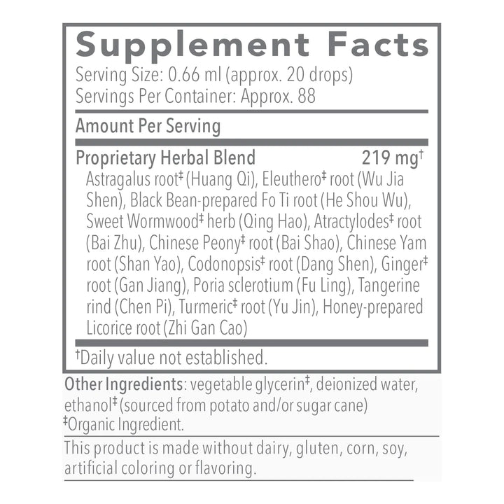 Este elixir no es un simple suplemento. Es una fórmula basada en la medicina tradicional china, con 13 hierbas adaptógenas cuidadosamente seleccionadas para combatir la fatiga ocasional, fortalecer tu sistema inmunológico y apoyar la salud digestiva. Hierbas como la artemisia y el Fo Ti trabajan en sinergia para promover una respuesta inflamatoria saludable y desintoxicar tu organismo, mientras disfrutas de un sabor único y picante que despierta tus sentidos.