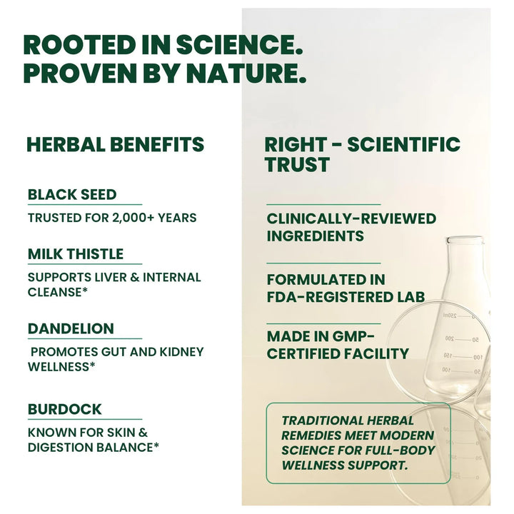 - Limpieza: Las hierbas como el cardo mariano y el diente de león estimulan la función hepática para eliminar toxinas.