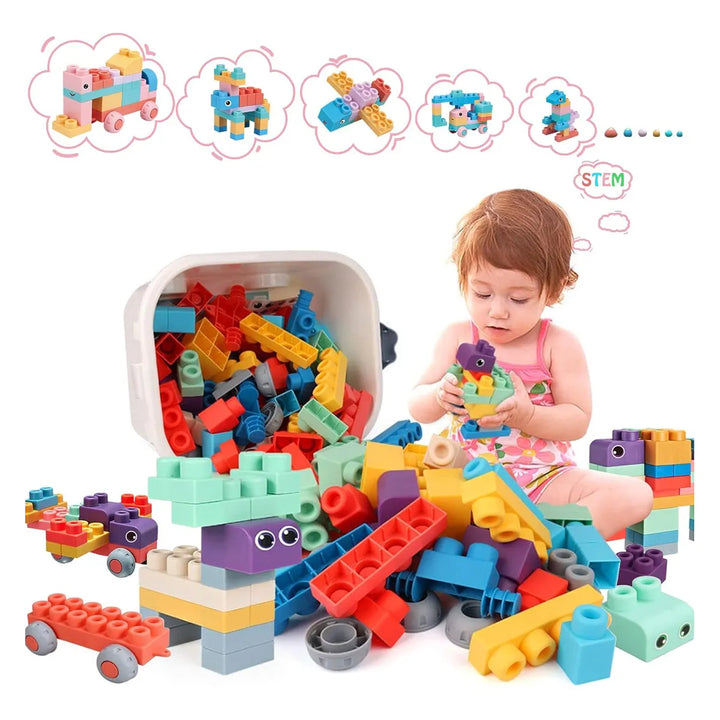 Estos bloques están diseñados para transformar el tiempo de juego en una experiencia educativa. Su tamaño y forma permiten que los niños los manipulen fácilmente, desarrollando su coordinación mano-ojo y habilidades espaciales. Al encajar y apilar los bloques, los pequeños ejercitan su memoria y lógica, mientras exploran infinitas posibilidades creativas.