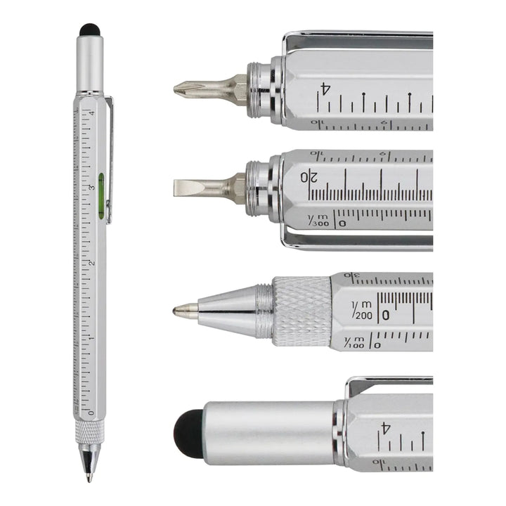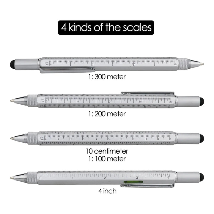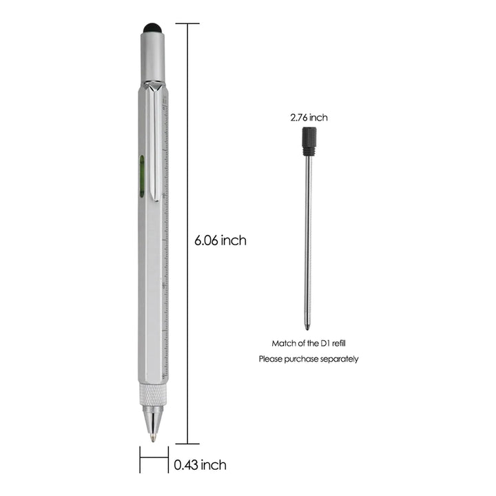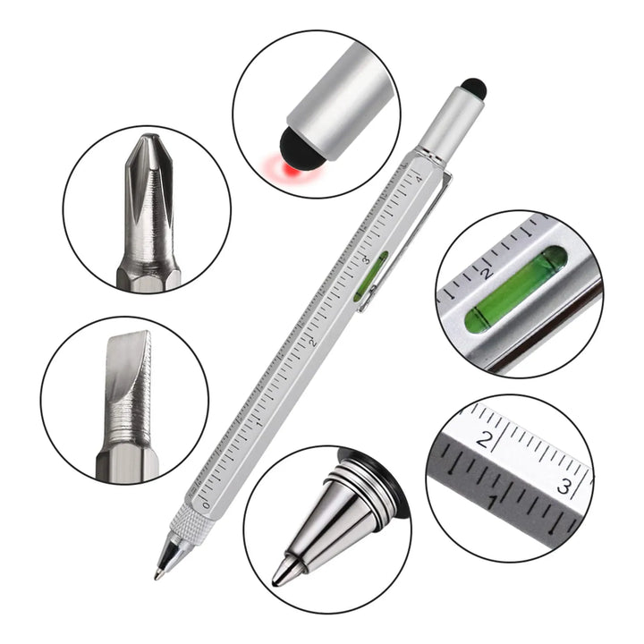 - 6 herramientas en 1: Bolígrafo, regla, nivel, destornillador Phillips, destornillador plano y lápiz óptico. 🔧