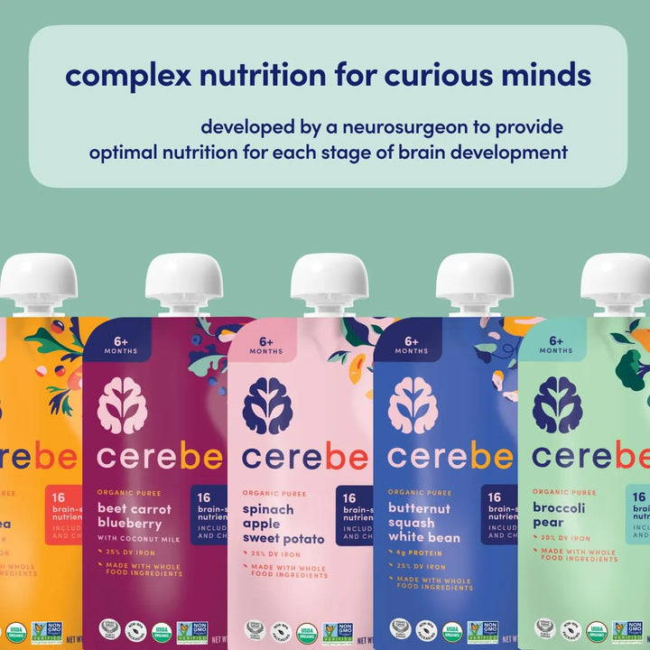 Cada bolsa de puré orgánico está diseñada para nutrir el cerebro y cuerpo de tu bebé mediante una combinación única de vegetales y frutas. Los 16 nutrientes clave, como el zinc y la vitamina E, actúan directamente en el desarrollo de conexiones neuronales, mientras que la textura suave facilita la digestión. Es ideal para introducir nuevos sabores y estimular el paladar sin riesgos.