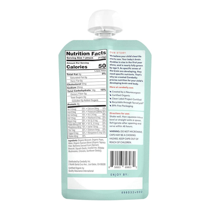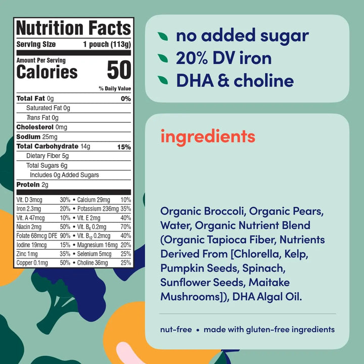 - Elaborado con peras y brócoli orgánicos, ricos en fibra y vitaminas esenciales 😊