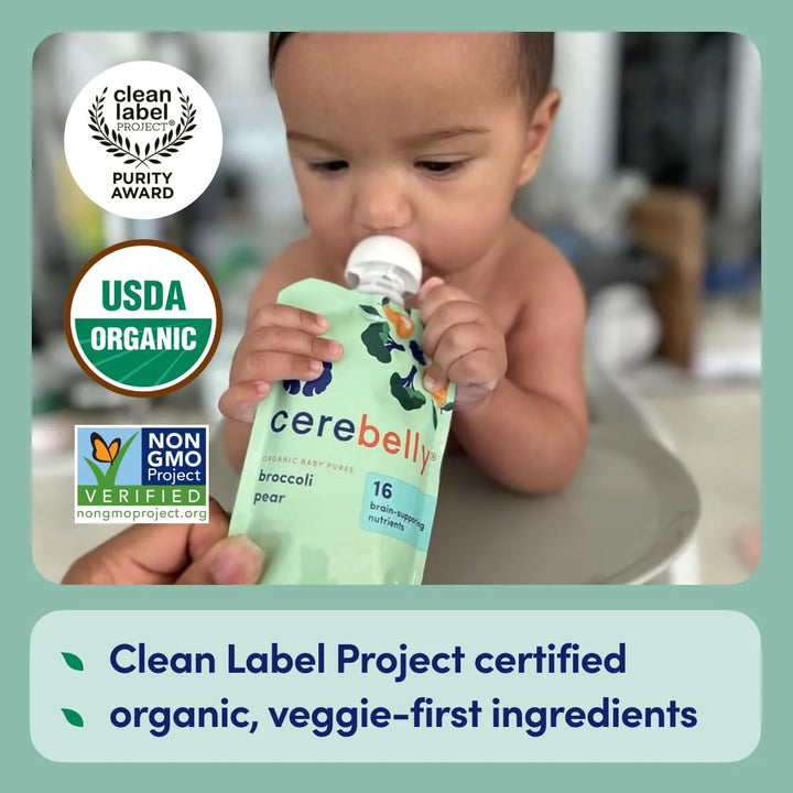 ¿Te preocupa la calidad de lo que consume tu hijo? Estas bolsas son la respuesta. Certificadas por Clean Label Project, garantizamos cero metales pesados, toxinas o ingredientes dañinos. Olvídate de las opciones genéricas del supermercado; aquí cada ingrediente orgánico fue seleccionado meticulosamente, desde las peras hasta el brócoli, para ofrecer un sabor delicioso y una nutrición incomparable. Sin azúcares añadidos, sin OMG y sin lácteos, es la opción segura que tu bebé merece.