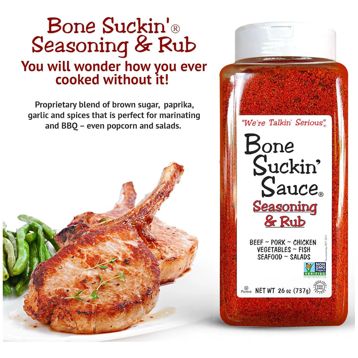 Bone Suckin Seasoning & Rub se adhiere perfectamente a tus alimentos, creando una capa crujiente y llena de sabor al cocinarse. Sus ingredientes naturales se activan con el calor, liberando aromas y sabores que penetran profundamente.
