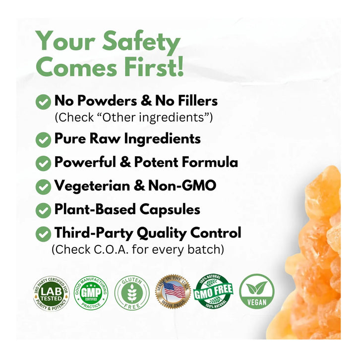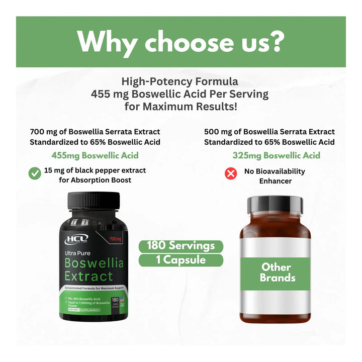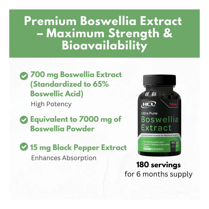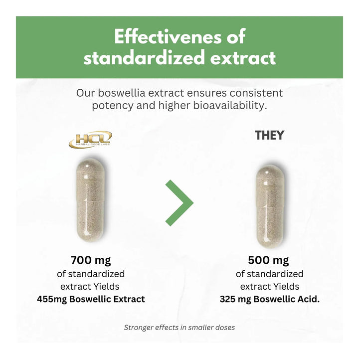Imagina tener en tus manos un suplemento que no solo alivia tus molestias, sino que también eleva tu bienestar general. Nuestras cápsulas de extracto de Boswellia Serrata con 65% de ácido boswélico son la solución que estabas buscando. Con una potencia excepcional, cada cápsula equivale a 7000 mg de resina en polvo, ofreciéndote una absorción superior y resultados visibles desde las primeras semanas.