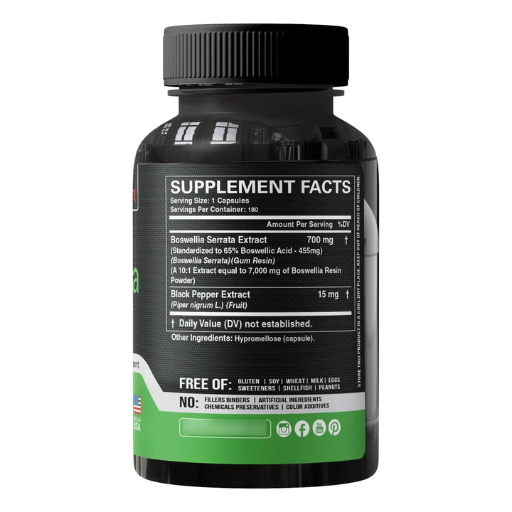- Extracto estandarizado al 65% de ácido boswélico para máxima eficacia. 🔥