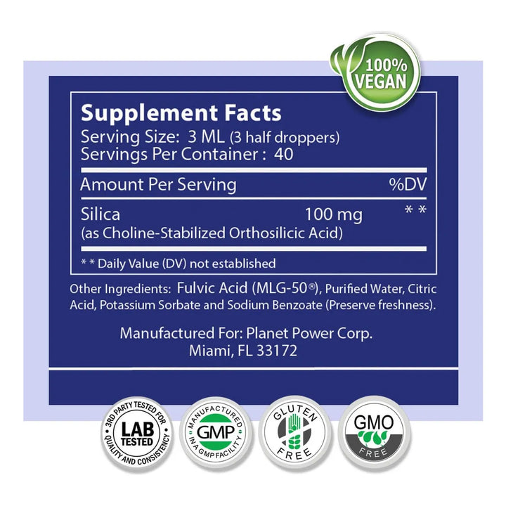 El secreto está en su fórmula científicamente diseñada. La sílice SiPower como ácido ortosilícico (CHOSA) es inmediatamente absorbida por tu cuerpo, llegando directamente a donde más se necesita: huesos, articulaciones, piel y cabello. Al combinarse con el ácido fúlvico MLG50, se crea un efecto sinérgico que no solo mejora la absorción de minerales, sino que también ayuda a eliminar toxinas y metales pesados acumulados en tu organismo.