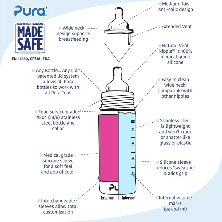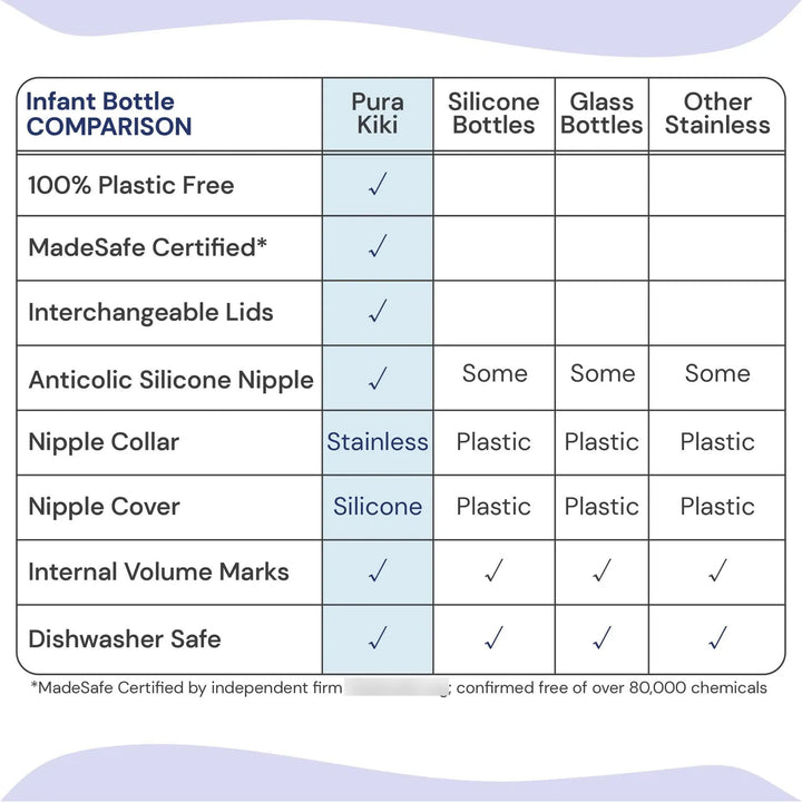 ¿Sabías que los plásticos convencionales pueden liberar sustancias dañinas? Con Pura Kiki, eso es historia. Su acero inoxidable de grado médico y silicona certificada MadeSafe garantizan cero toxinas. Además, su sistema anticólicos reduce los molestos gases, mientras que su manga de silicona protege de caídas y mantiene la temperatura ideal. No es solo un biberón, es una inversión en bienestar.
