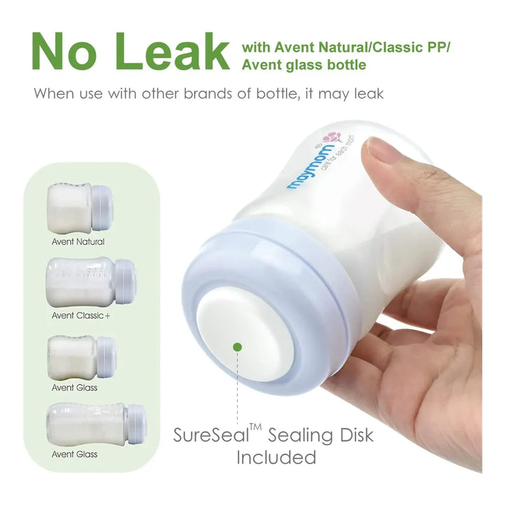 - 💧 Sellado hermético: Disco SureSeal de silicona que evita fugas y protege cada gota de tu leche materna.