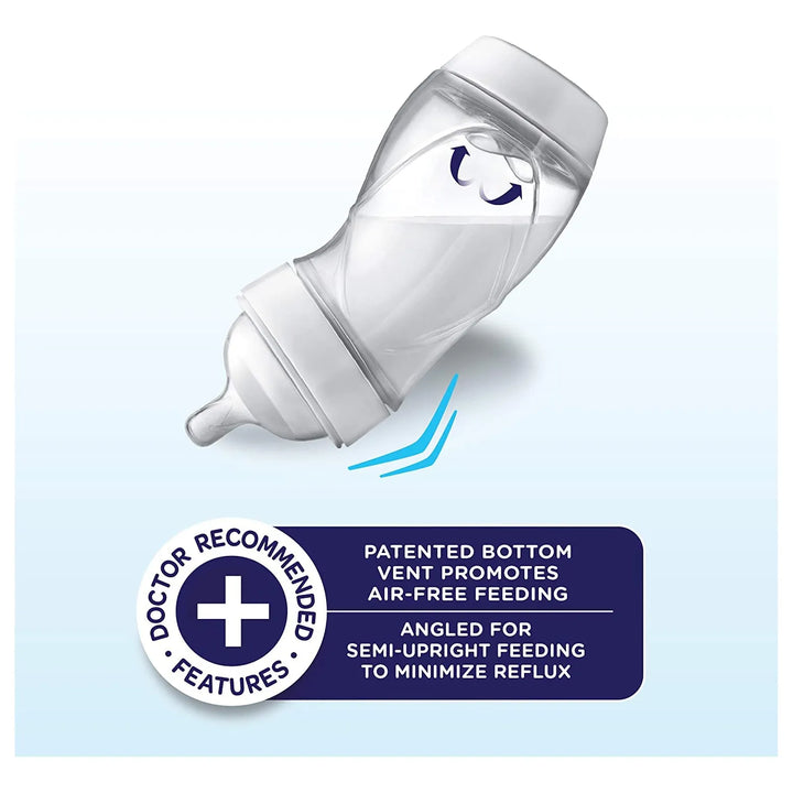 Con su innovador sistema de ventilación inferior, estas botellas mantienen el aire fuera de la leche, reduciendo la ingesta de aire que causa cólicos. El diseño ergonómico en ángulo promueve una alimentación semi-vertical, recomendada por pediatras para prevenir infecciones de oído. Cada detalle está pensado para imitar la experiencia natural del amamantamiento, facilitando la transición entre el pecho y el biberón.